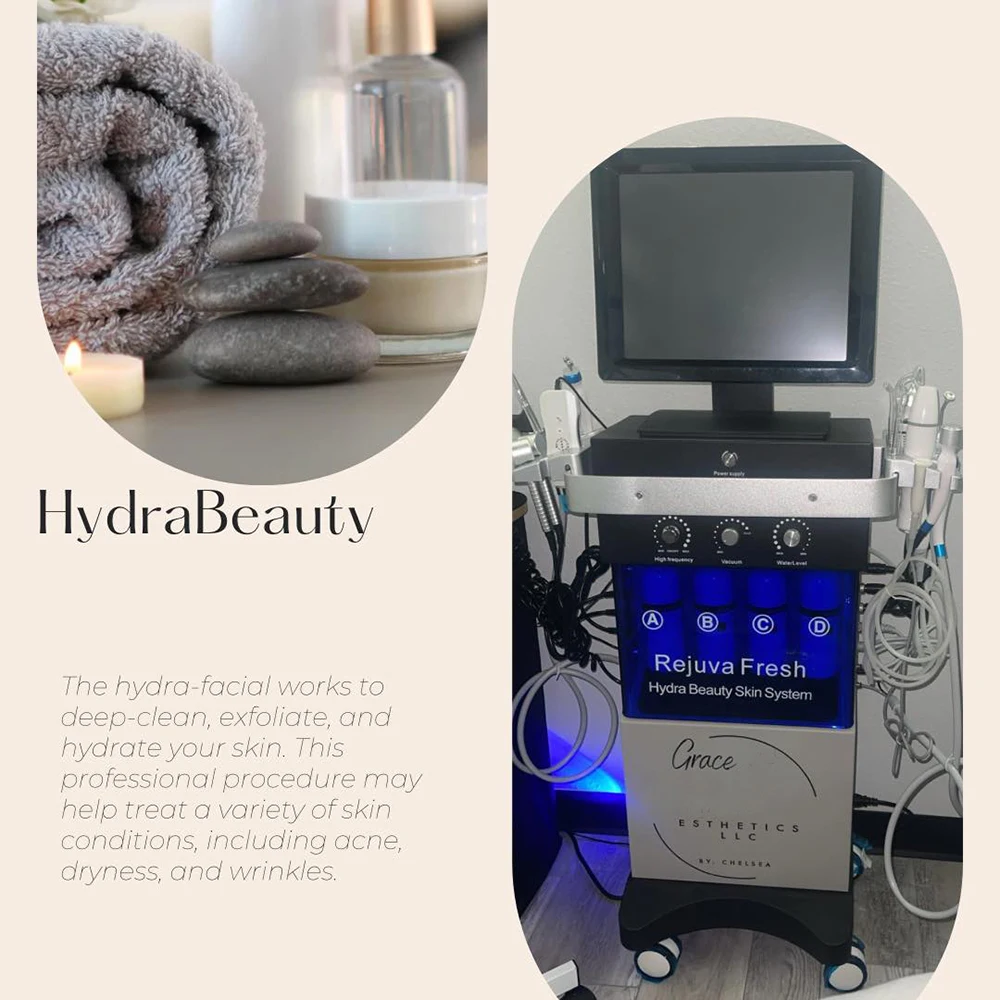 Hydradermabrasion (Hydra Facial) – the latest in skincare technology. Hydradermabrasion utilizes the natural healing powers of water and oxygen to effortlessly exfoliate the skin without the use of hard crystals or abrasive textured wands, generating deeply hydrated and healthier looking skin.