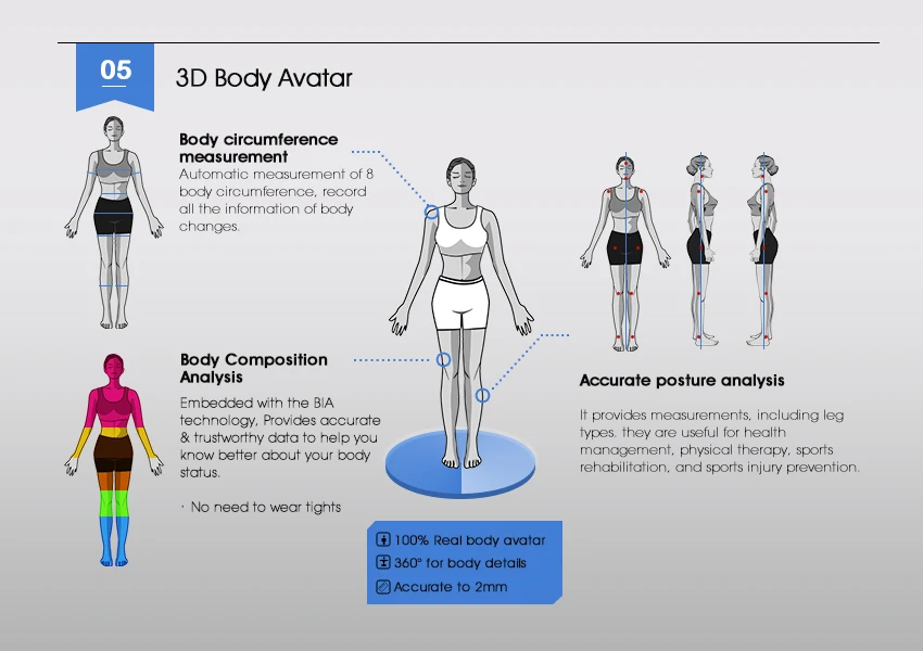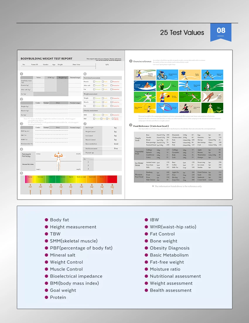2 Expert: Totally 26 values of body composition analysis with height measurement.
